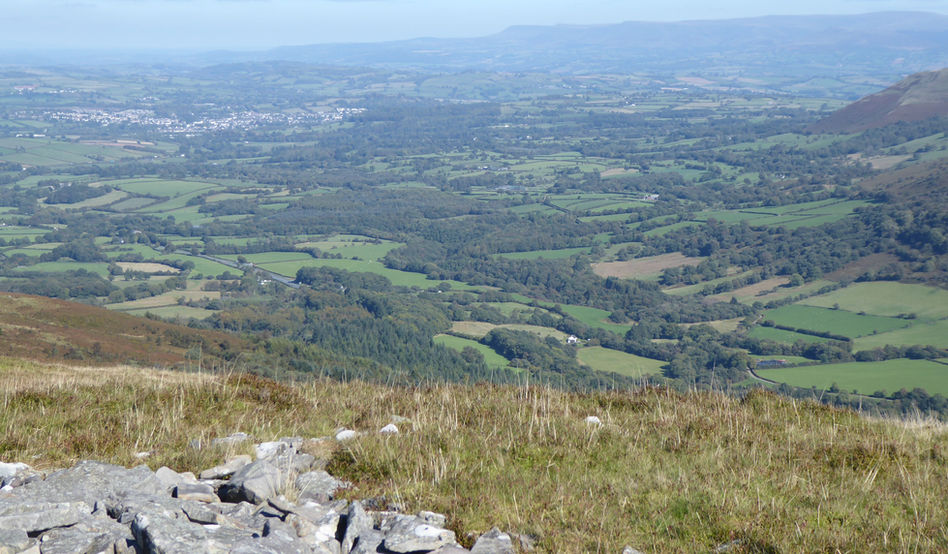view from Cefn Llechid Common towards Mynydd Illtyd and the farm